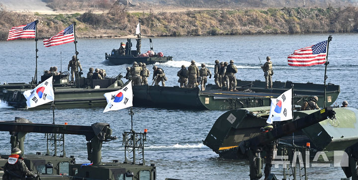 南漢江で実施された韓米連合渡河訓練(9/11)