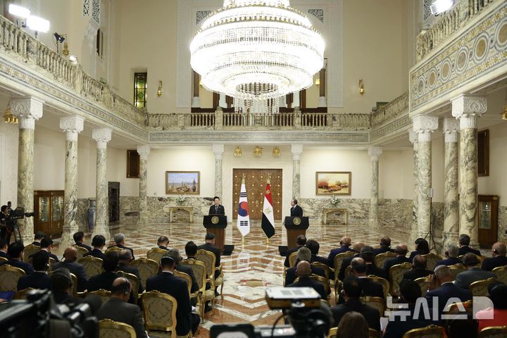 握手する韓国とエジプトの大統領 /エジプト(10/17)