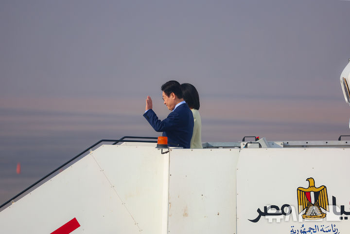 エジプトでの日程を終えてヨハネスブルグに向かう李在明大統領と金恵京夫人(3/12)