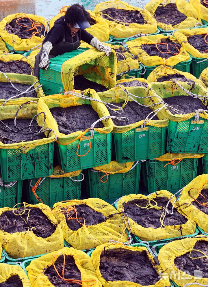 旬を迎えた「洛東のり」の収穫=釜山(4/7)