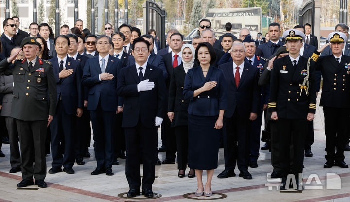 韓国戦争参戦記念塔を訪れて献花する李在明大統領(11/18)