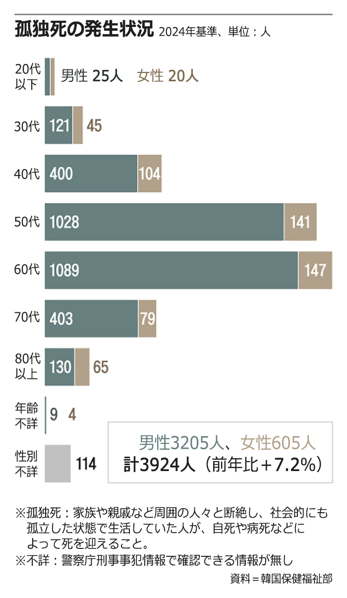 人生の最期も寂しい大韓民国…孤独死前年比7.2%増3924人=過去最多(2/2)