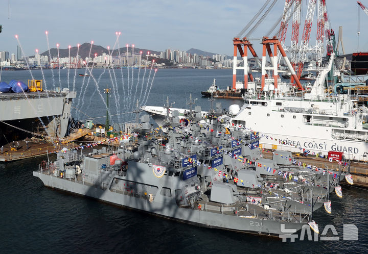 韓国海軍の新型高速艇4隻の合同進水式(2/12)