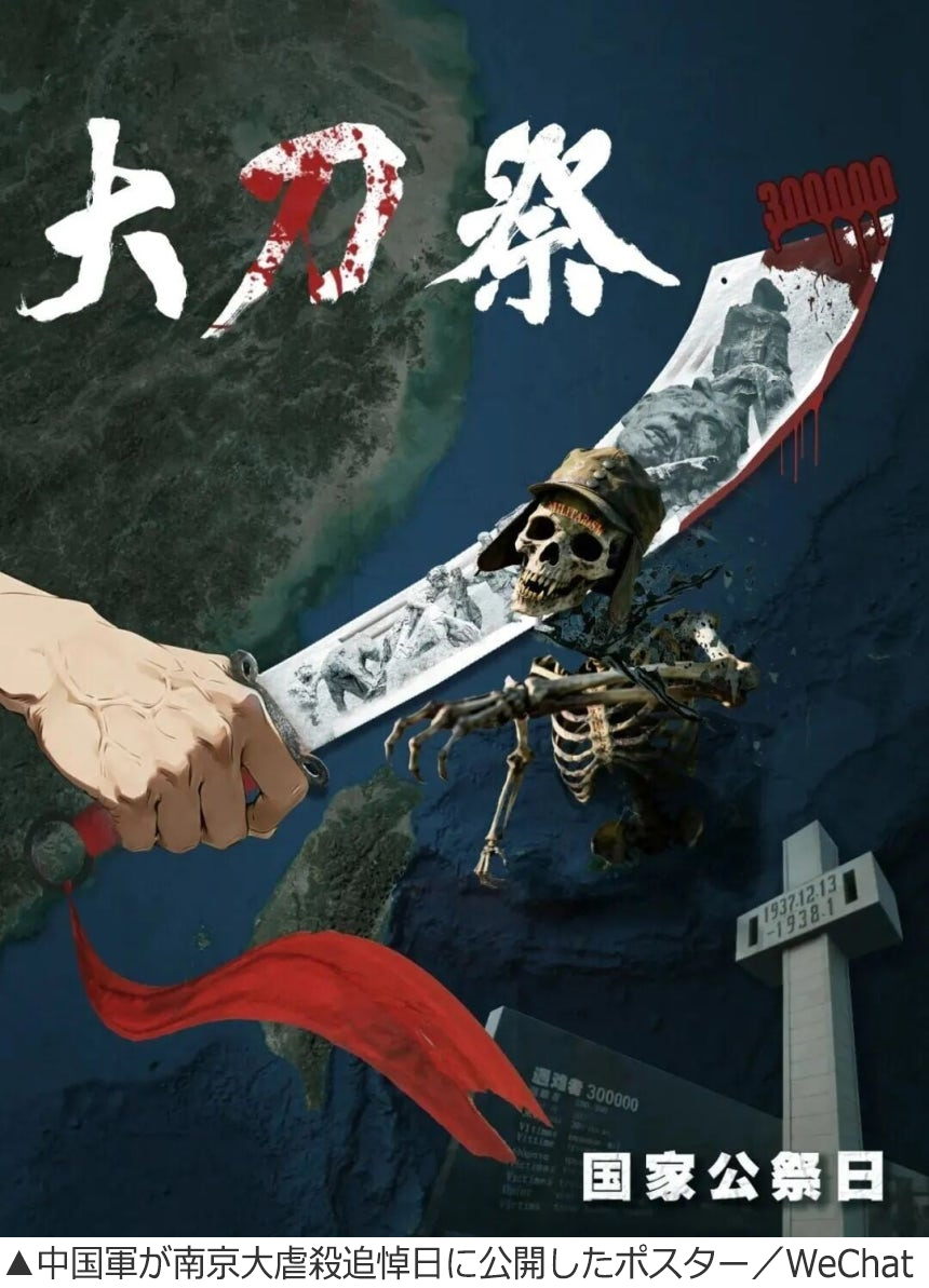 中国軍、南京大虐殺追悼日に「日本軍の骸骨を切り裂くポスター」公開(2/2)