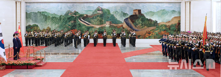 儀仗隊を査閲する李在明大統領と中国の習近平国家主席 /北京(8/14)