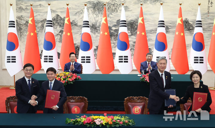 握手する李在明大統領と中国の習近平国家主席 /北京(4/7)