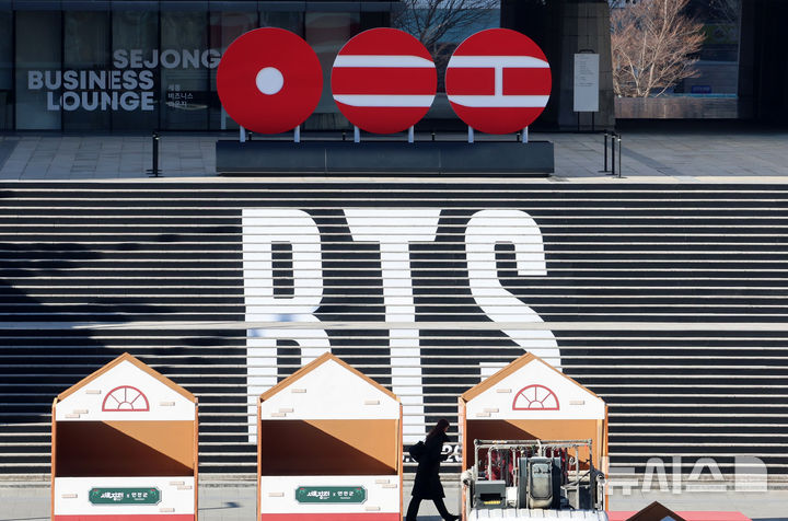 3月のカムバックを前に、世宗文化会館の階段に施された「BTS」のラッピング(2/10)