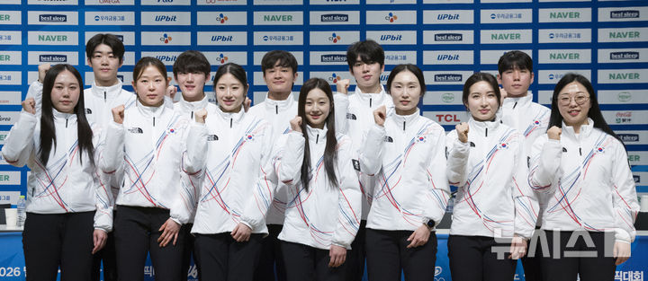 記念撮影するフィギュア韓国代表チーム(3/13)