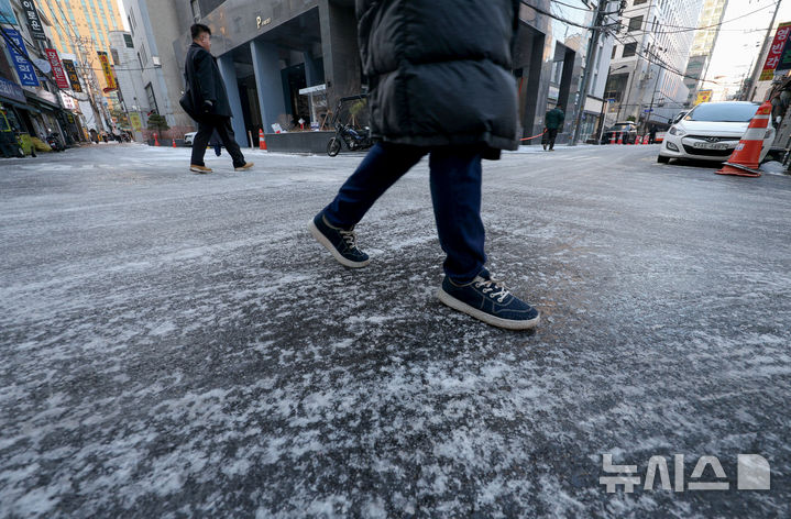 路面凍結 おそるおそる歩く人々 /ソウル(8/8)