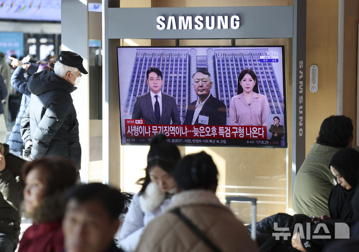 ソウル駅で尹・前大統領関連のニュースを見つめる市民(3/7)