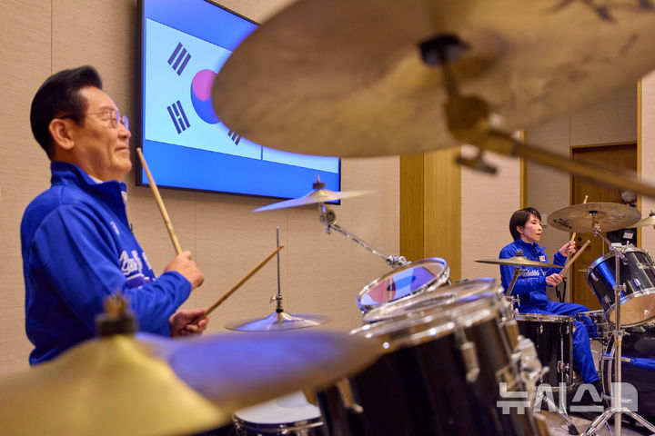 日本製ドラムでそろって演奏する韓日首脳 /奈良(5/8)
