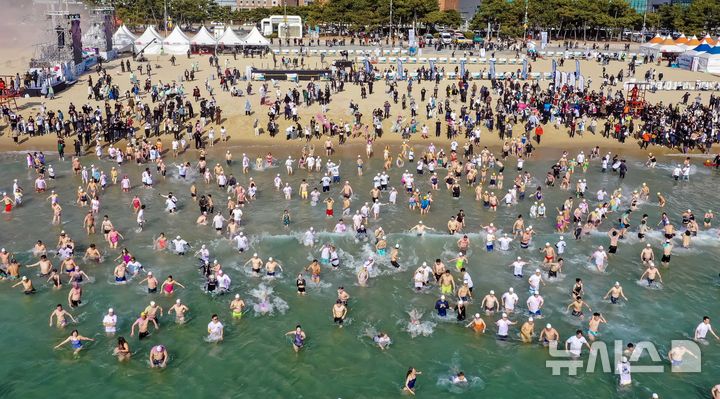 「海雲台ホッキョクグマ祭り」で寒中水泳 /釜山(3/7)