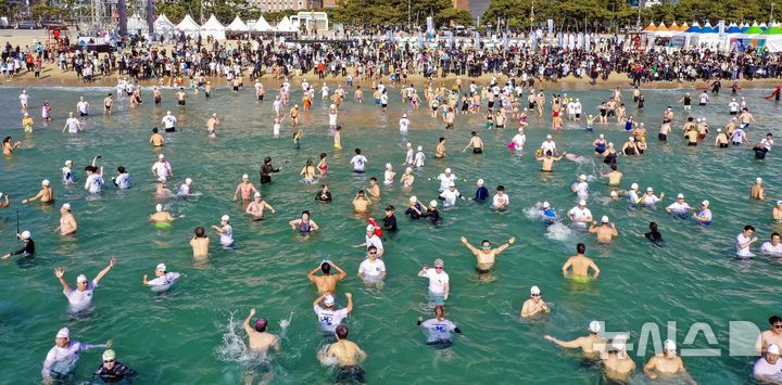 「海雲台ホッキョクグマ祭り」で寒中水泳 /釜山(5/7)
