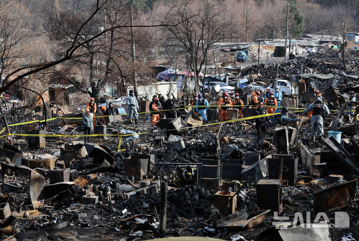 九龍村4地区、火災現場の合同鑑識(1/16)