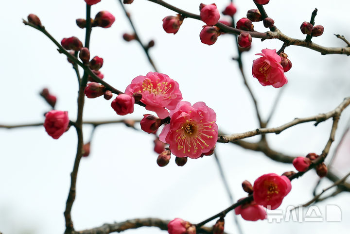 「大寒」を前に花開いた紅梅=釜山(3/10)