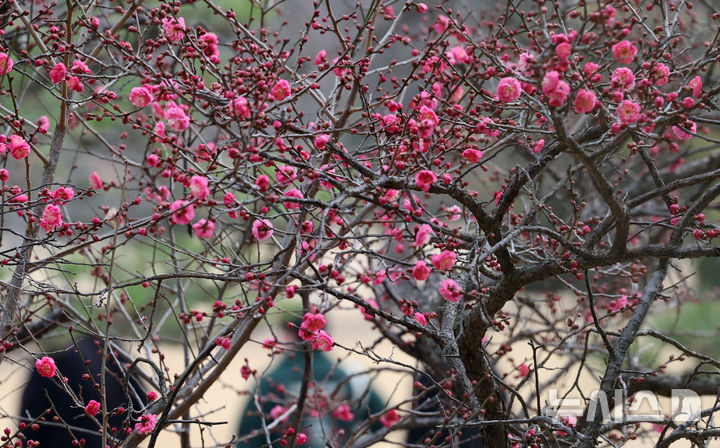 「大寒」を前に花開いた紅梅=釜山(7/10)