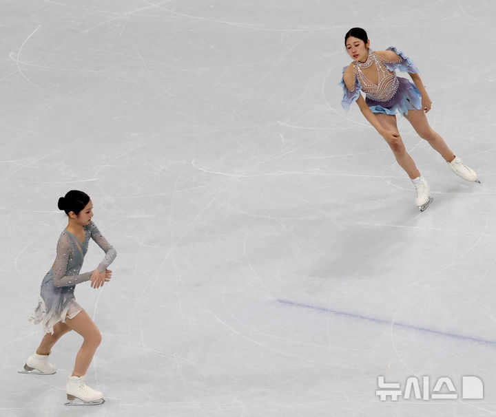 同じ組で競い合う辛智娥と李海仁(1/5)