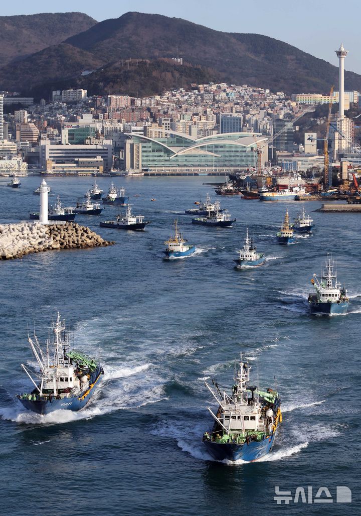 旧正月連休明け 大型巻き網漁船が一斉に出航 /釜山(2/11)