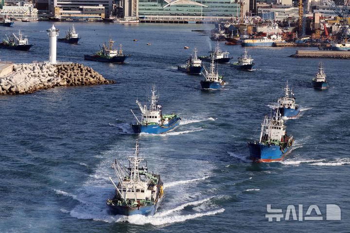 旧正月連休明け 大型巻き網漁船が一斉に出航 /釜山(5/11)