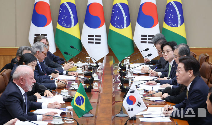 記念撮影する韓国・ブラジル大統領(14/17)