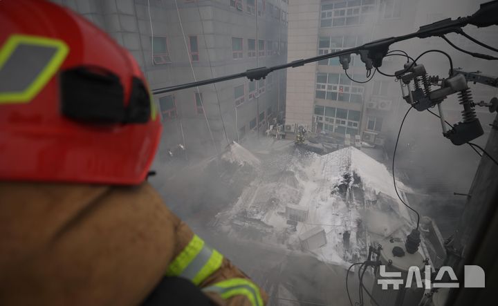 鍾路の貴金属通りで火災…消火に当たる消防隊員(2/12)