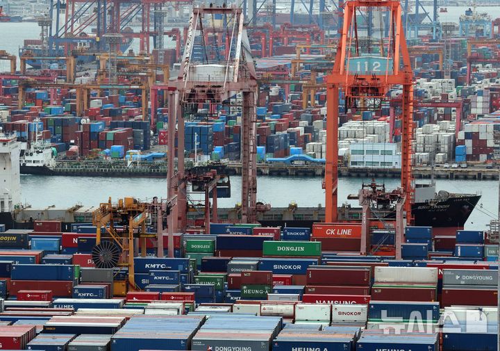 1月の韓国の経常収支は歴代5位の数字…コンテナが積み上げられた釜山港(2/11)