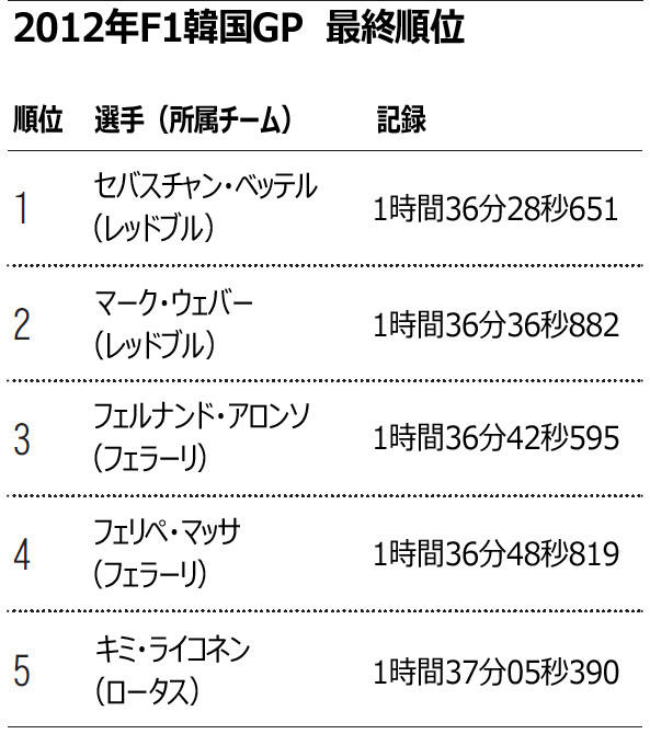F1:韓国GP、ベッテルが2連覇(2/2)