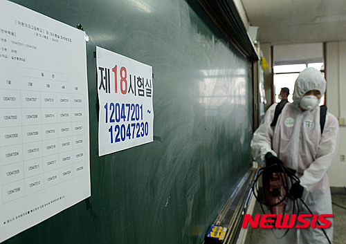 MERS:公務員試験会場で消毒作業(4/7)