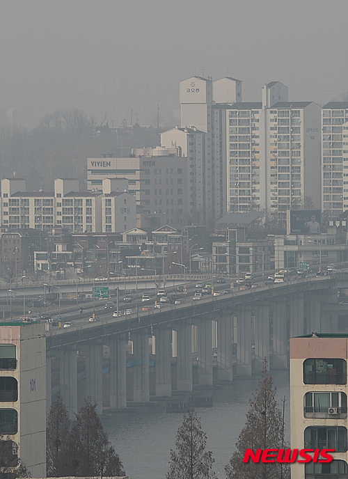 PM2.5で白くかすんだソウル市内(2/6)
