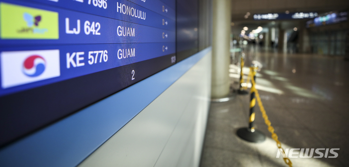 仁川-グアム路線の運航取消で閑散とした出国場(6/7)