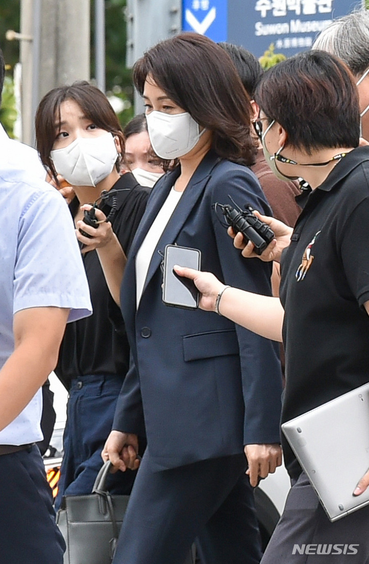 警察に出頭する李在民議員夫人の金恵景氏(10/10)