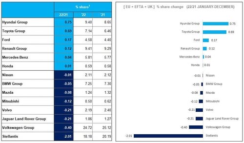現代自・起亜の22年欧州シェア9.4% 上昇幅はトップ(1/1)