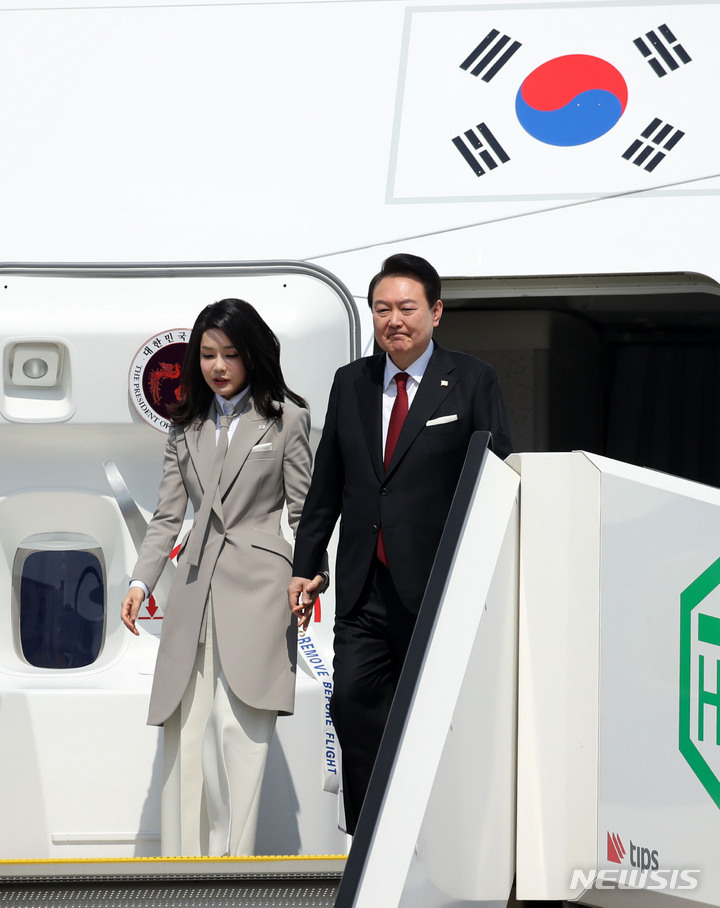 尹錫悦大統領夫妻が日本到着、出迎えの人たちとあいさつ(8/15)
