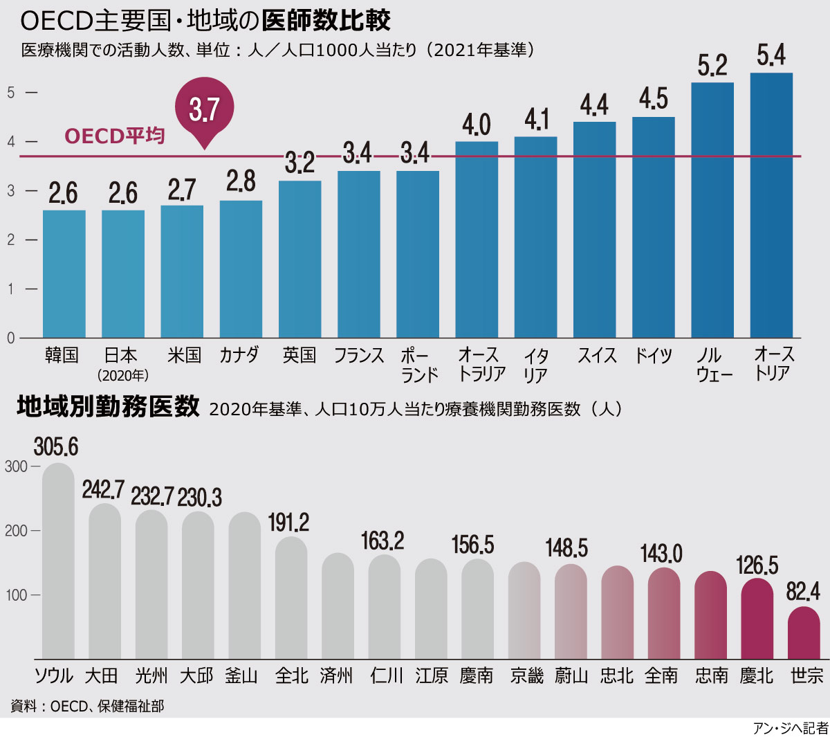 【グラフィック】OECD主要国・地域の医師数比較(1/1)
